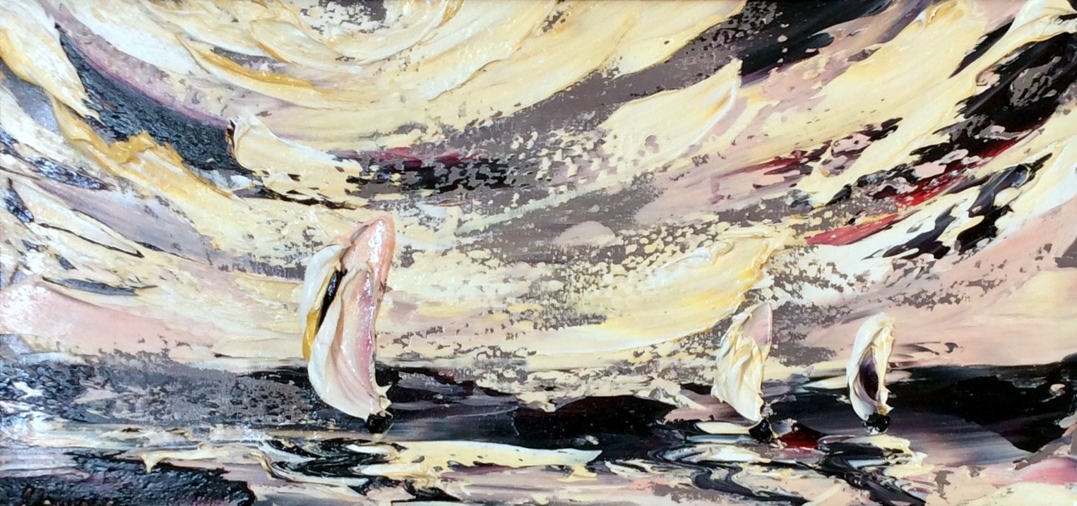original oil palette knife framed in a white wood double frame with gold slip frame size 50cm x 80cm