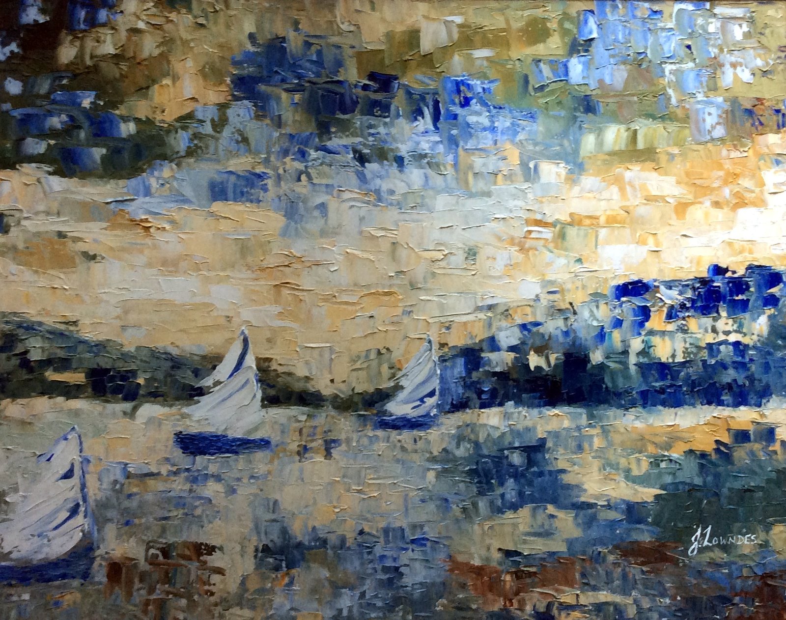 ORIGINAL OIL PALETTE KNIFE framed in a white wood  frame frame size 72cm x 88cm