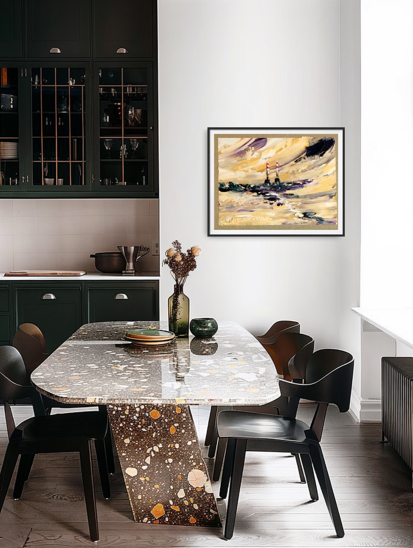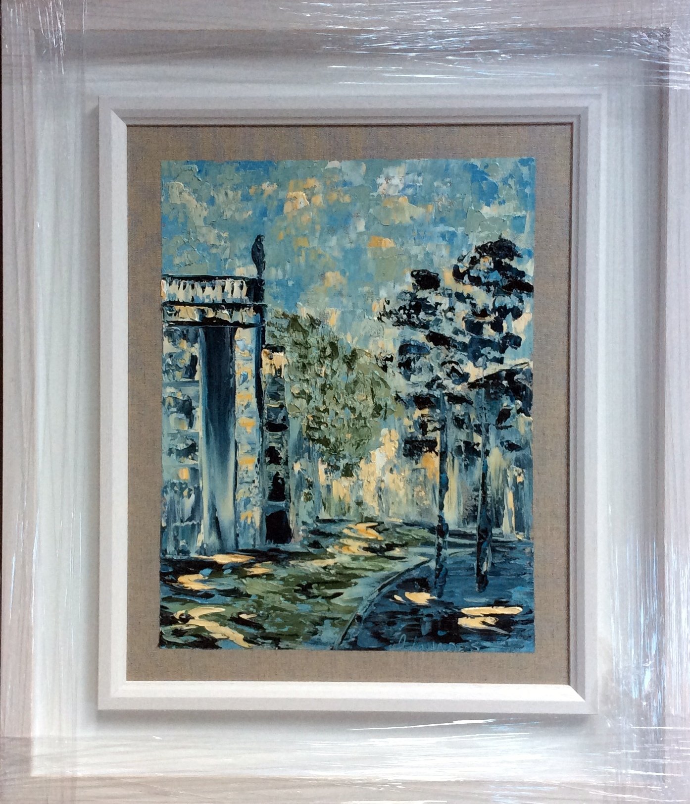 original oil palette knife framed in a black double frame with gold slip