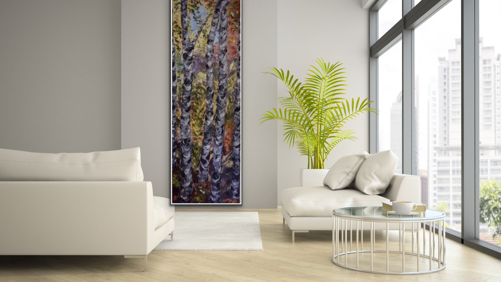 ORIGINAL OIL PALETTE KNIFE PAINTING FRAMED SIZE 83 CM X 205 CM Bringing the Outdoors IN
