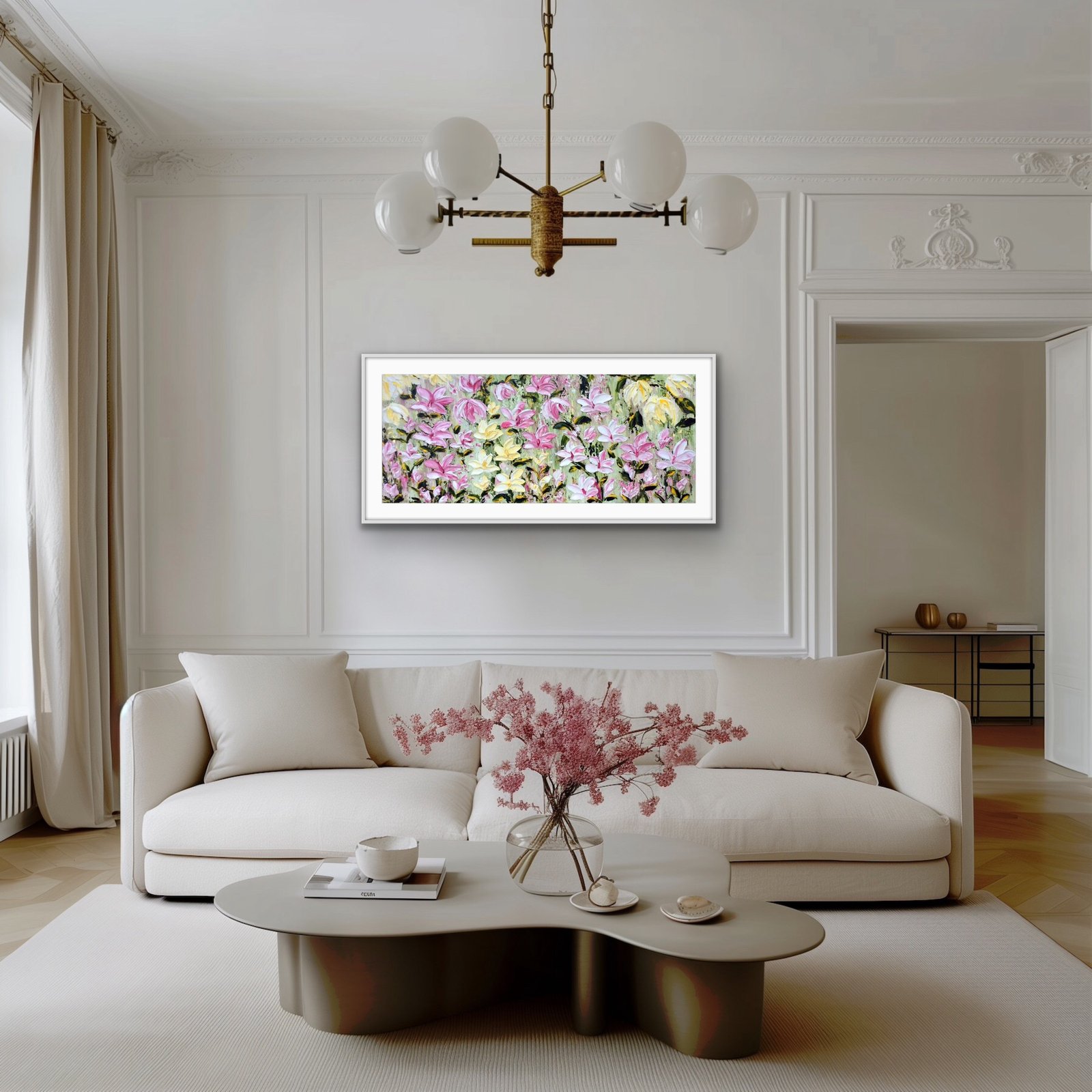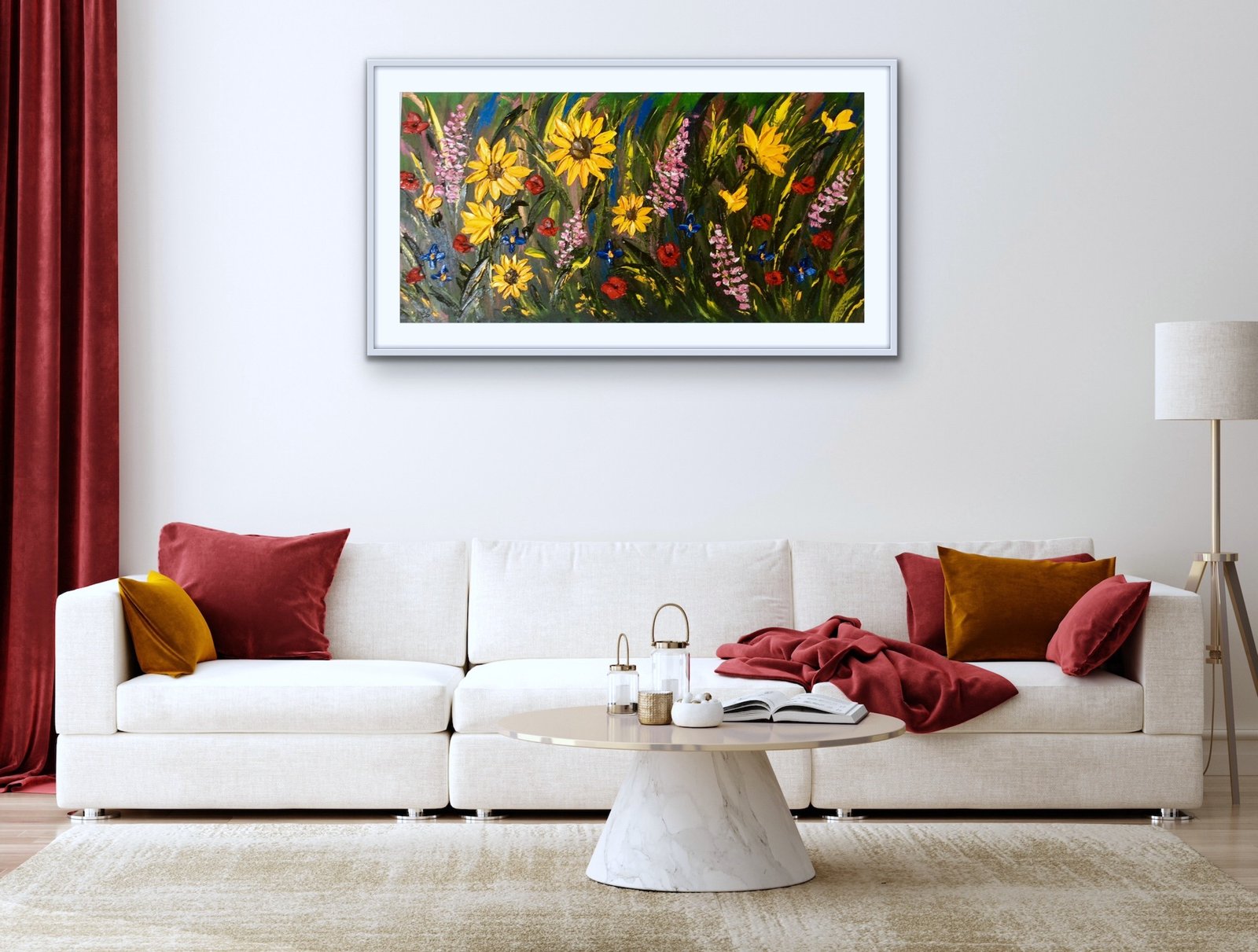 original oil palette knife painting framed size 70cm x 174cm Bringing the Outdoors In