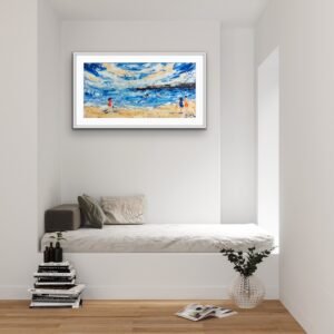 This original palette knife painting is inspired by memories of my own childhood. Summers on Portmarnock and Donabate beach. Glorious Summers where we didn't even have to wear a cardigan. At least that's what I remember and Summers with my own children at the beach. I call the series " making memories" as time spent with loved ones is just that. Times you will look back on. Especially when the children are grown or when you your self the Adult.