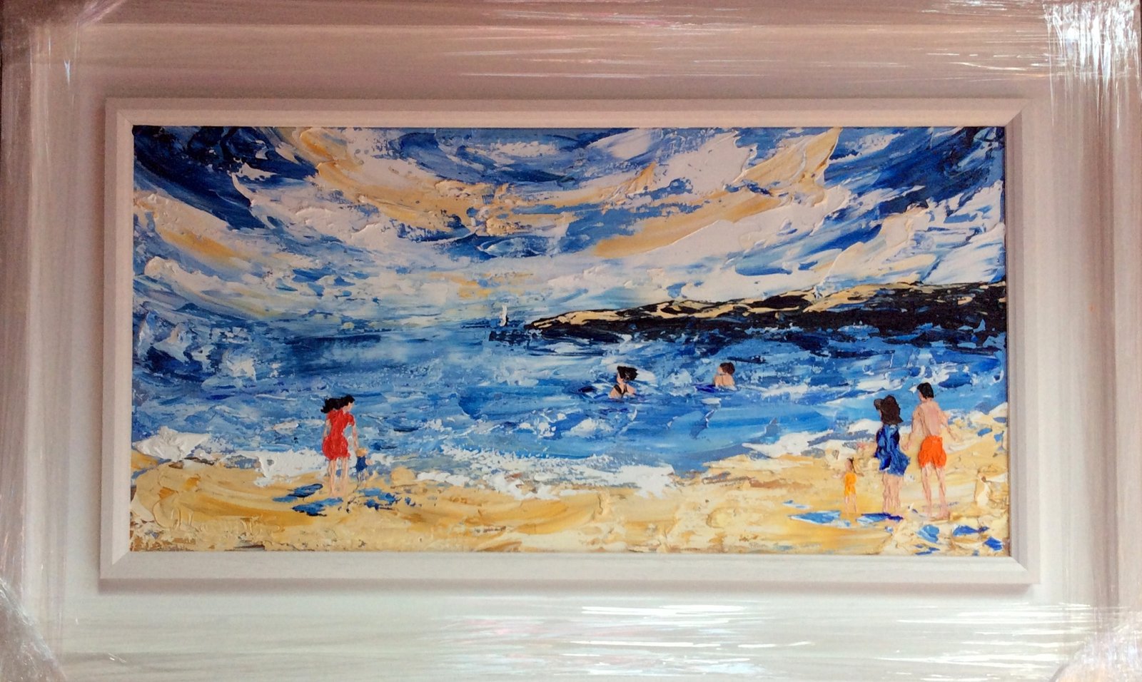 frame size 55cm x 90cm painting framed in a white double frame