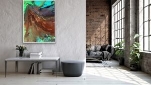 original Fluid Art/ acrylic pour with bronze and gold leaf