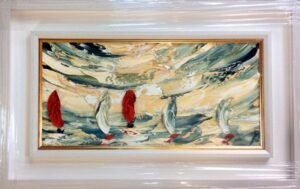 This aircraft was built by De Havilland at Hatfield in early 1936 and its first flight was performed by Geoffrey de Havilland himself. Its Certificate of Airworthiness was issued on 18 April 1936, registered in the UK as G-AECZ, and it was operated by several small British operators until it was impressed into military service on 11 October 1939, being later allocated RAF serial AV982. It was restored to the civil register as G-AECZ on 18 June 1946, registered to Air Taxis Ltd of Special arrangements were agreed with the authorities to use registration EI-ABI, the registration used by the original aircraft. It made its first flight post restoration on 10 April 1986 and its Certificate of Airworthiness was issued on 18 April 1986, coincidentally 50 years to the day after its first C of A had been awarded. I felt a connection immediately as this date 18th April its my birth day and so I just had to paint this magnificent plane. I loved painting it. I might add I didn't win the competition but it was great taking part. It stretched me as an artist. Congratulations to the winner SIZE 70CM X 140 CM (28 INCH X 55 INCH)Majestic Moonlight – part of the silver leaf series