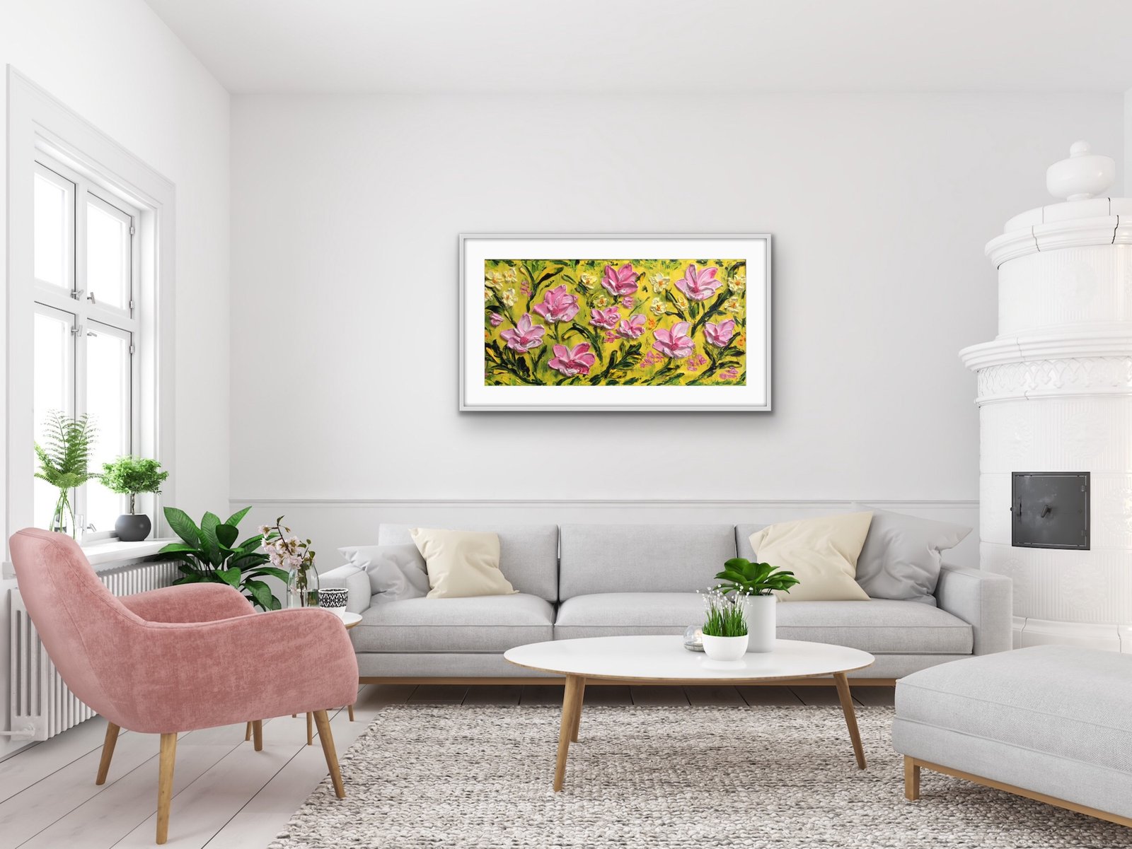 original oil palette knife framed in a white wood frame frame size 40cm x 40cm