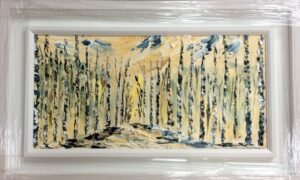 original oil palette knife painting framed in a white wood double frame
