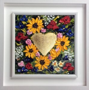 original oil palette knife hand finished with gold leaf heart