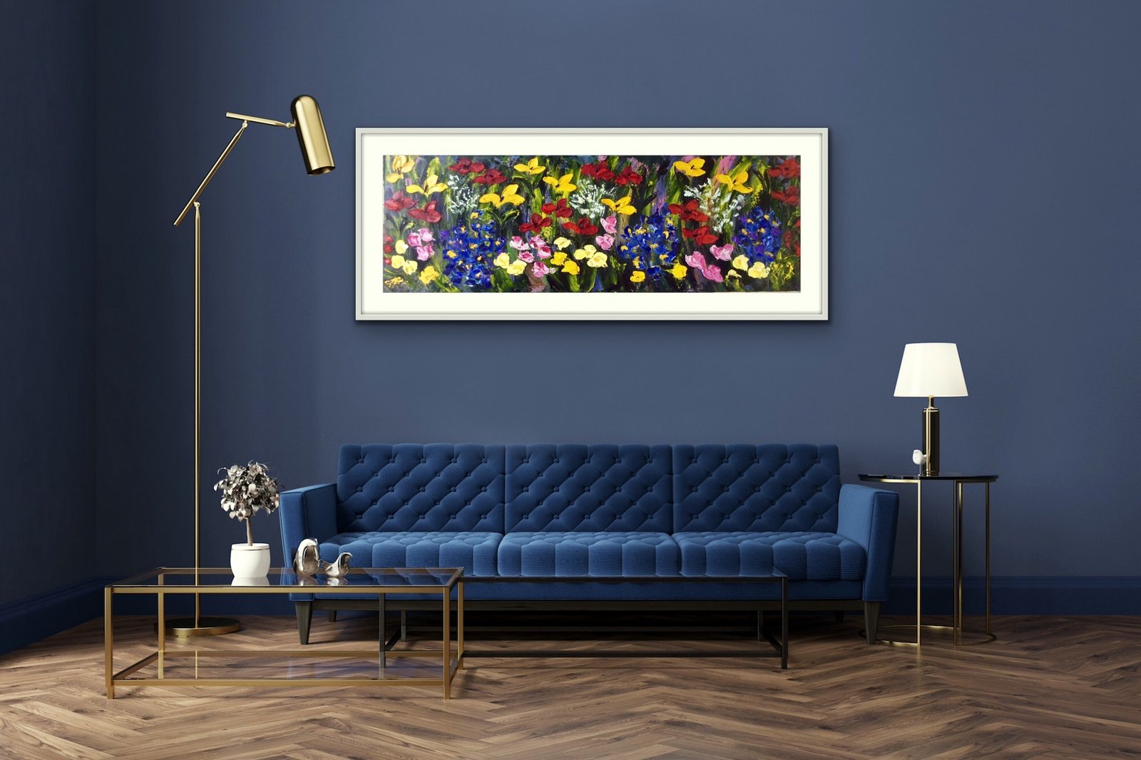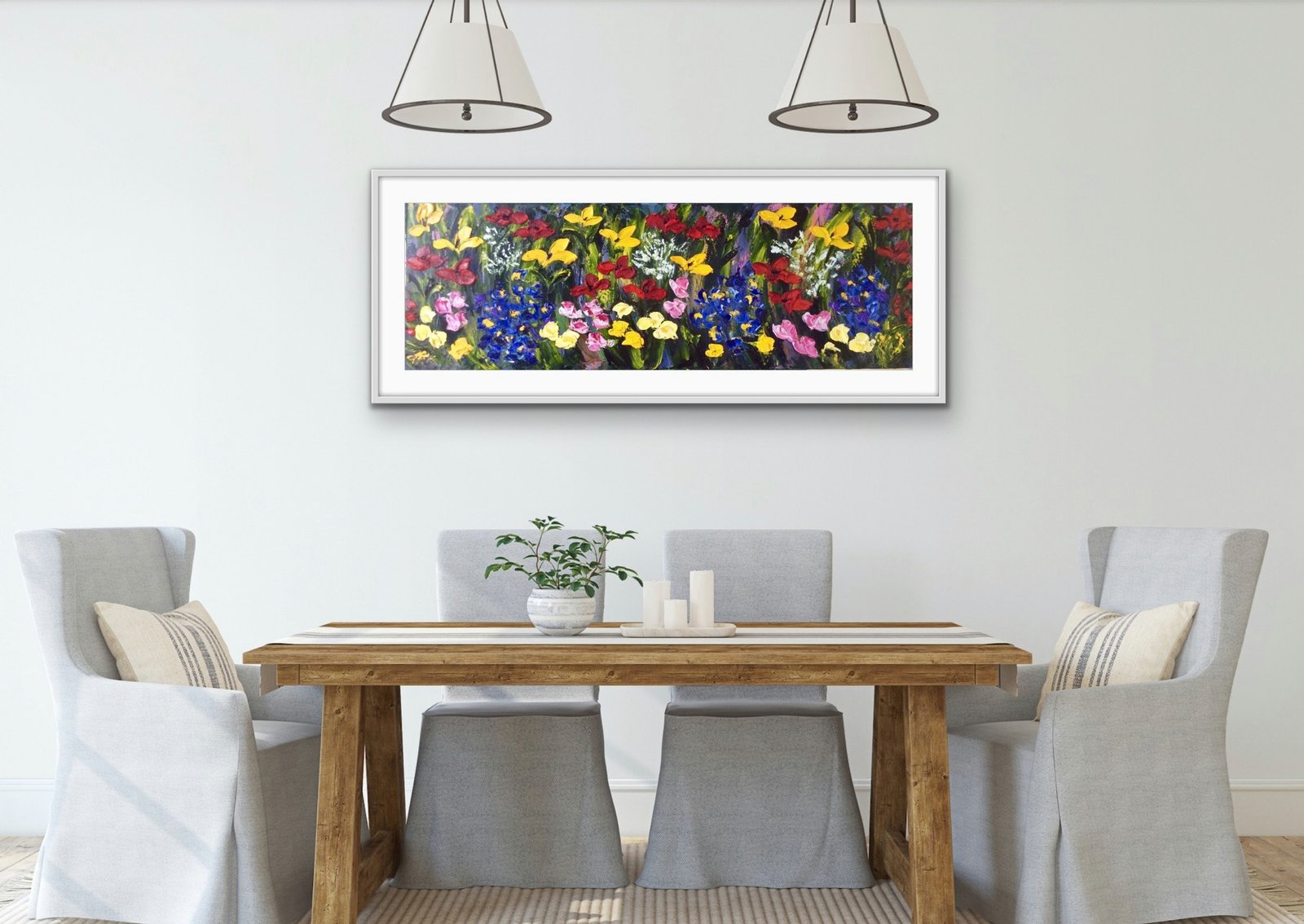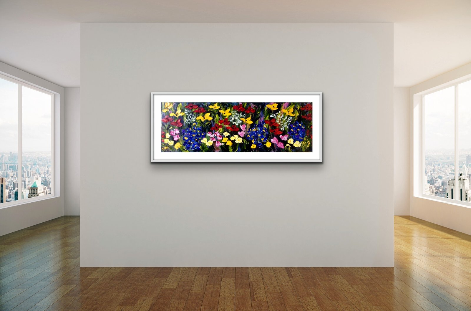 frame size 55cm x 90cm painting framed in a white double frame
