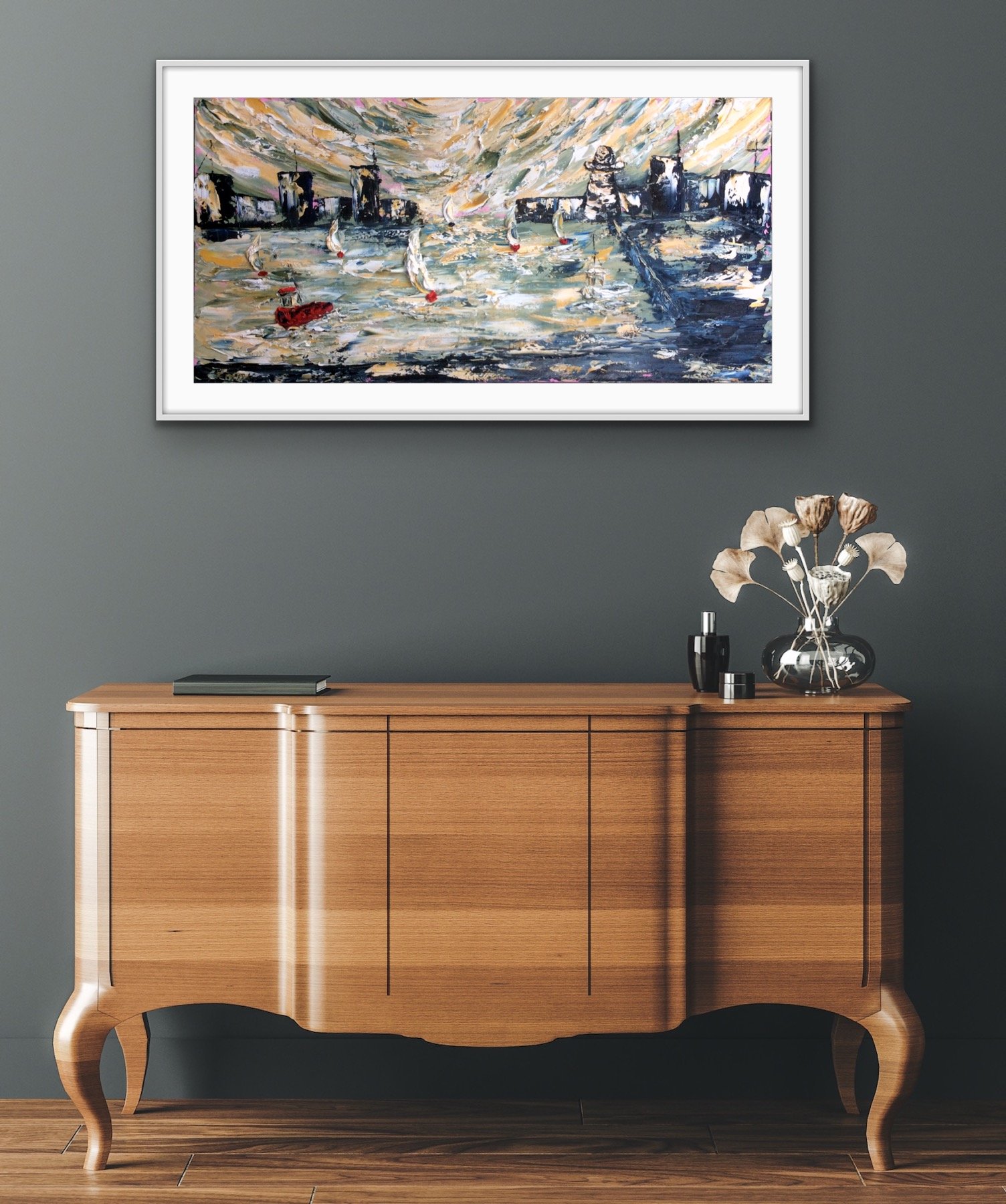 original oil palette knife framed in a white wood frame frame size 35cm x 35cm