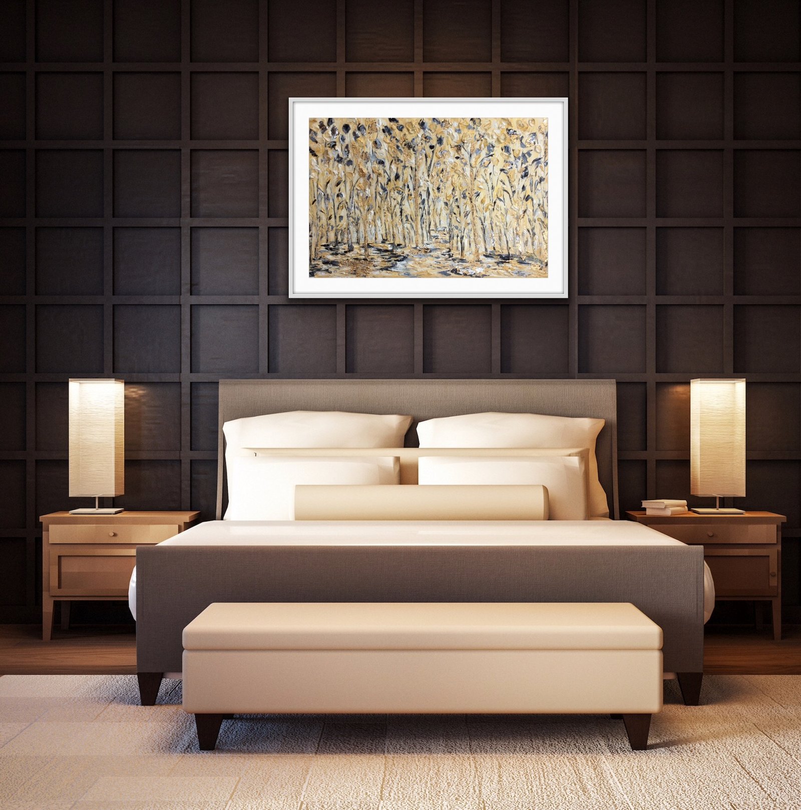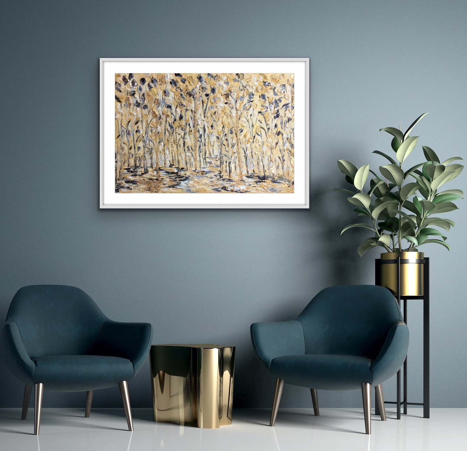 original oil palette knife painting framed in a white wood double frame