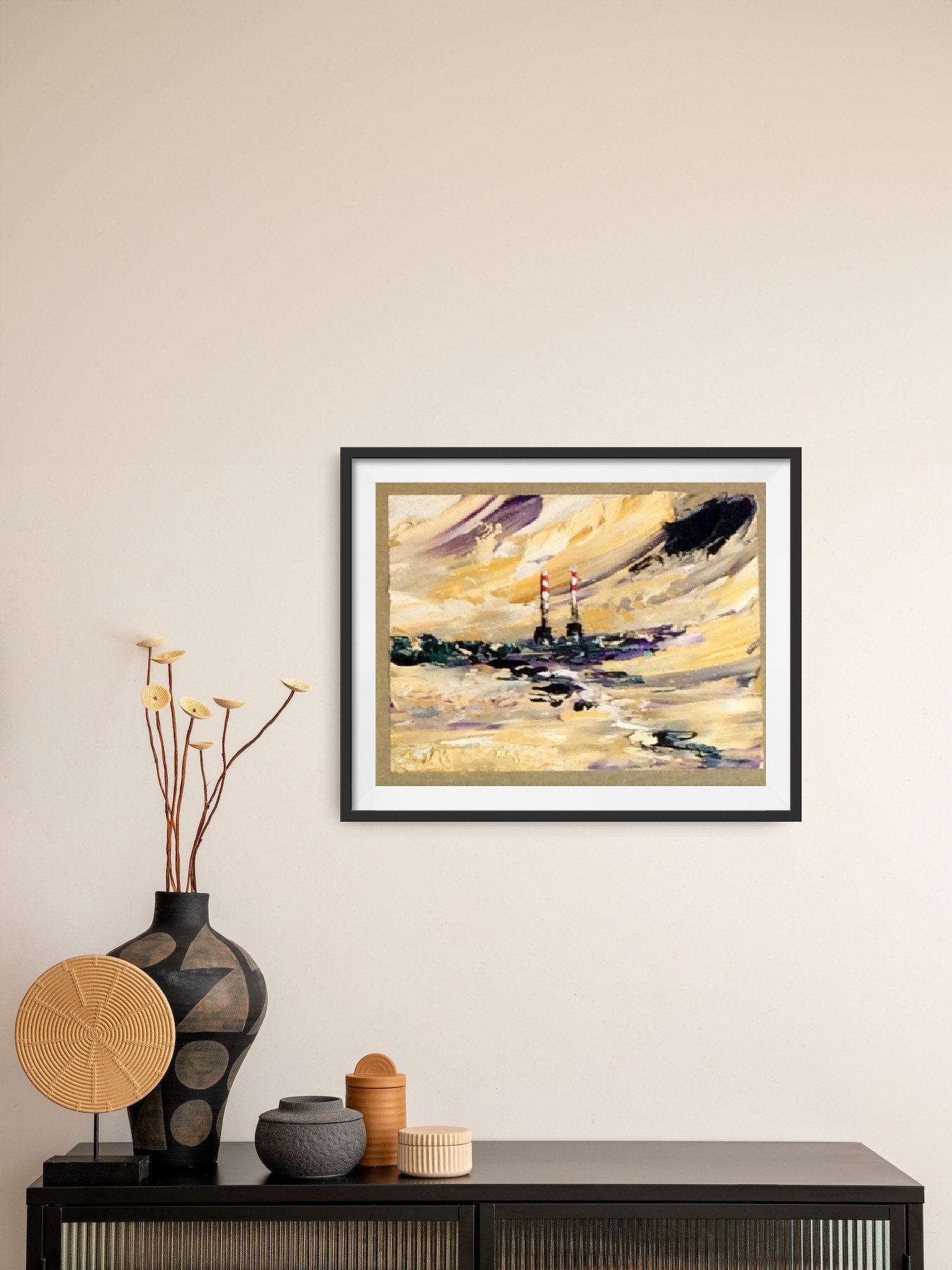 original oil palette knife framed in a black double frame with gold slip