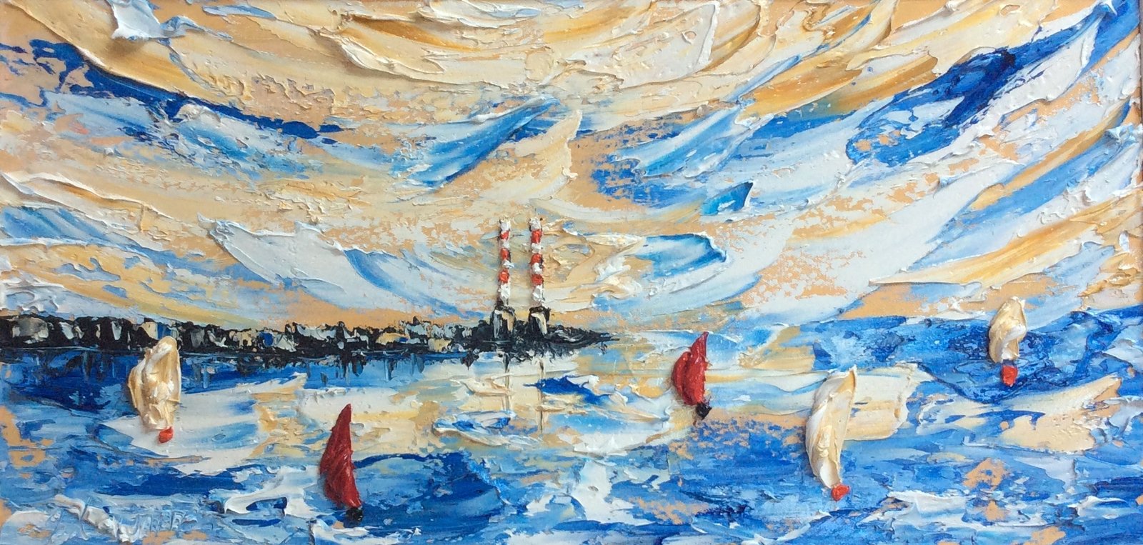 Poolbeg Stacks well known Dublin Landmark – original oil palette knife