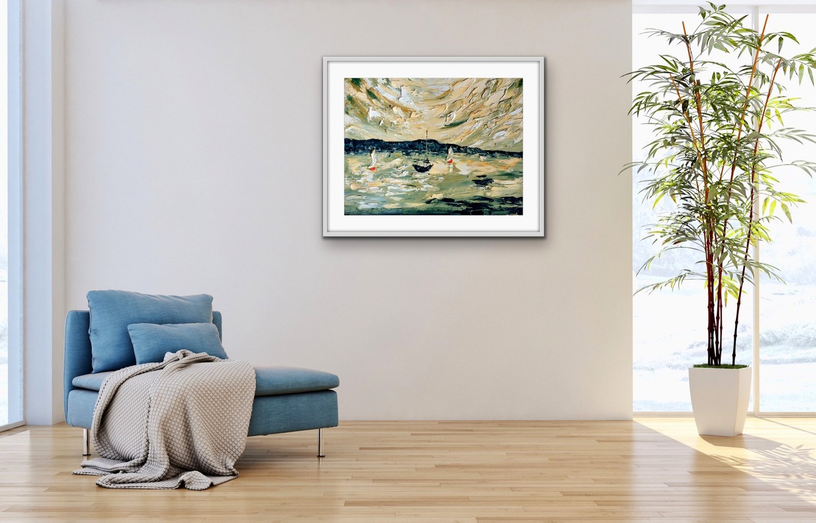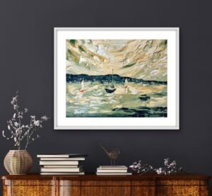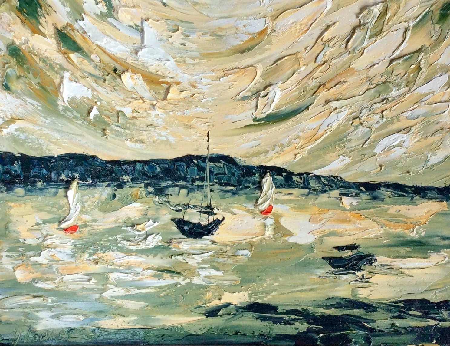 White sail boats sped across the sparkling sea- Original – part of The Gold Leaf series