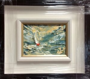 €255 original oil palette knife framed in a black and white double frame gold inset