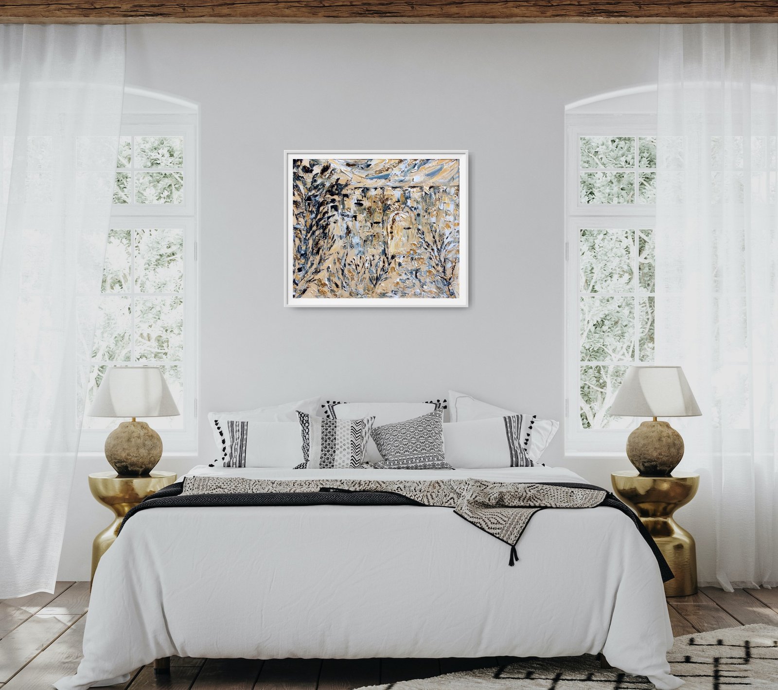 framed in a white wood double frame