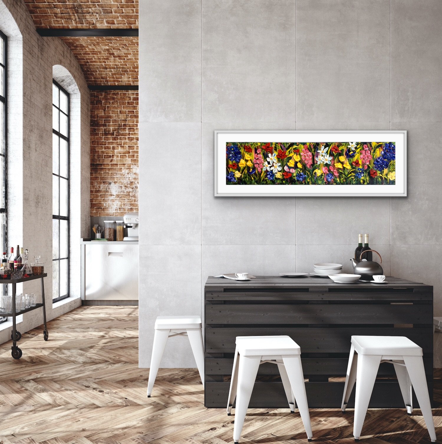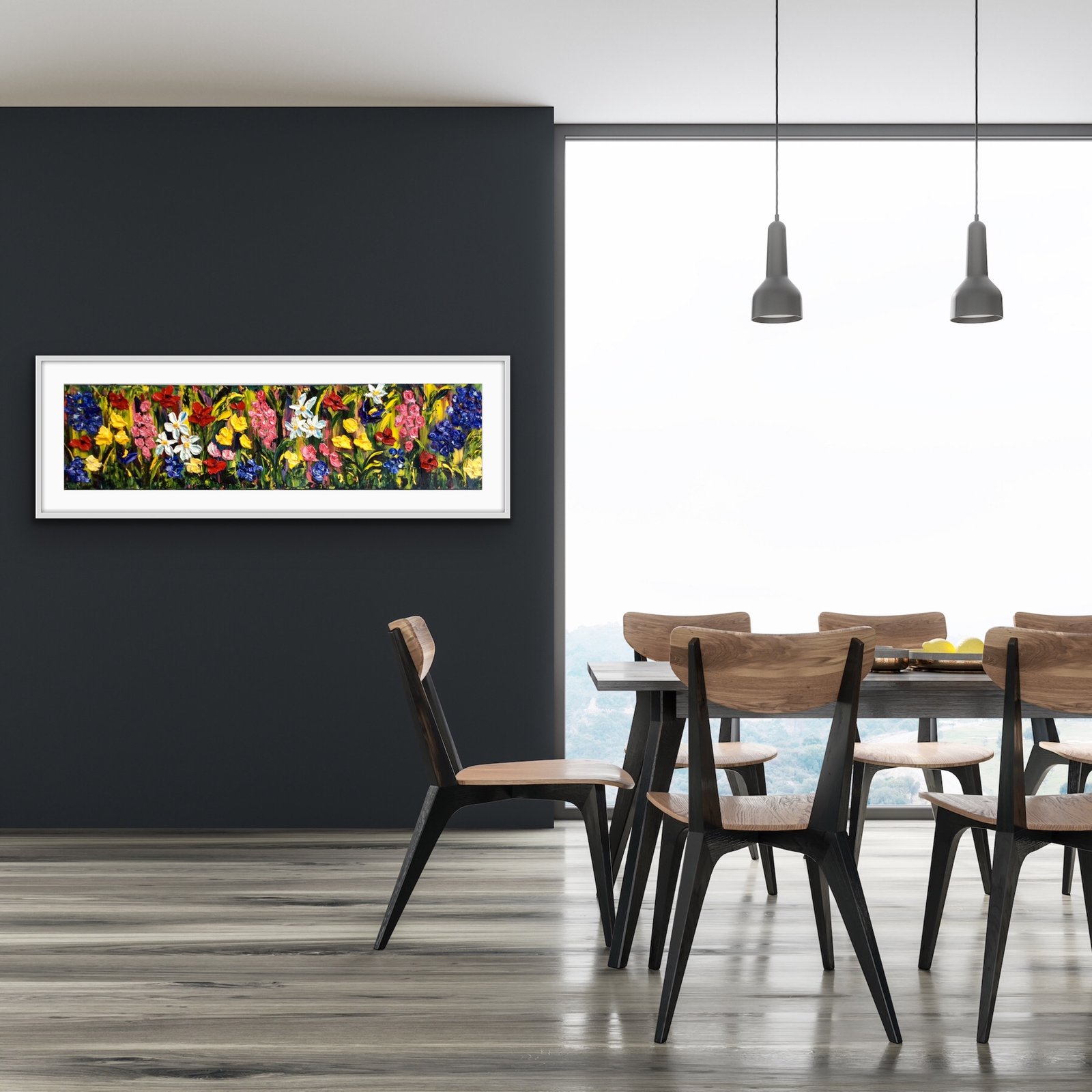 large original oil wildflower painting framed in a floating frame