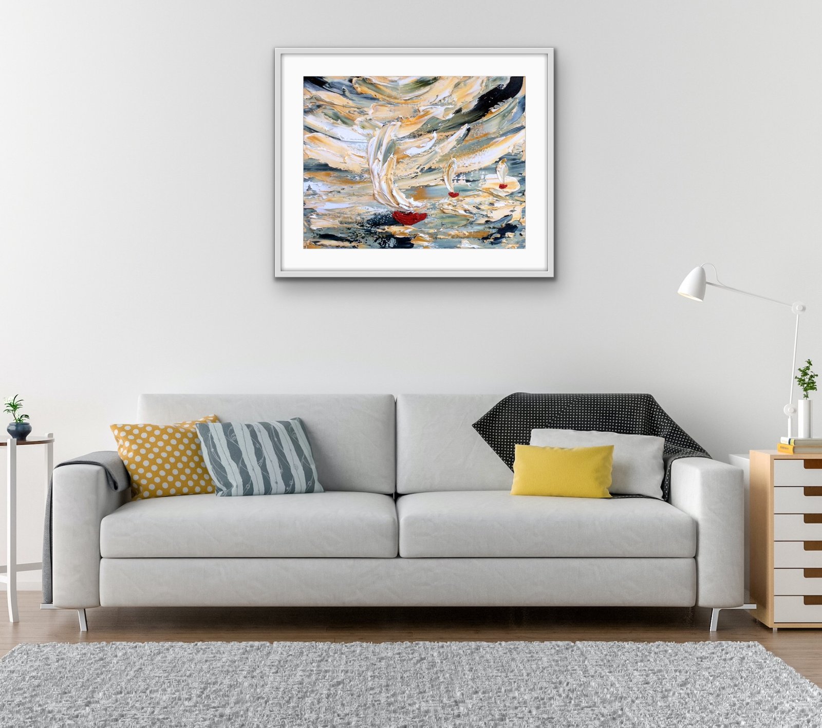 framed in a white wood double frame