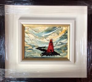 original oil palette knife framed in a black and white double frame gold inset