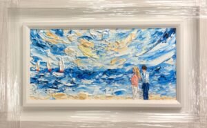 This original oil palette knife painting is inspired by the beautiful Chimney stacks of the Power Station. You either love them or hate them. I love them. I feel you know where you are they are a landmark. I have a facination with them and you will notice I paint them quite a lot. I love driving to the Red Stables along the Sea Front to St Annes Park. I cannot wait to see the skyline the sky the colours. Its always different no matter how many times your take that drive. I love that. This particular palette of colour I call my Lovers Sea palette. It is very romantic with the mauve and teal accents. The beautiful yellow ochres lend itself to a very rich and dreamy painting. Its size is impressive XXL