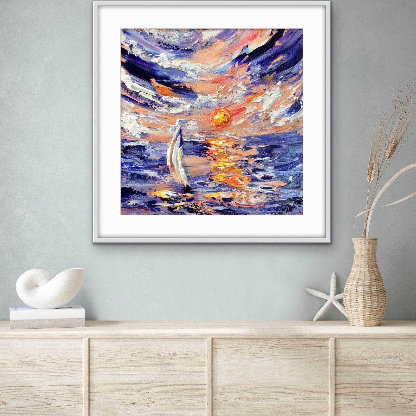 original oil palette knife framed in a white double frame