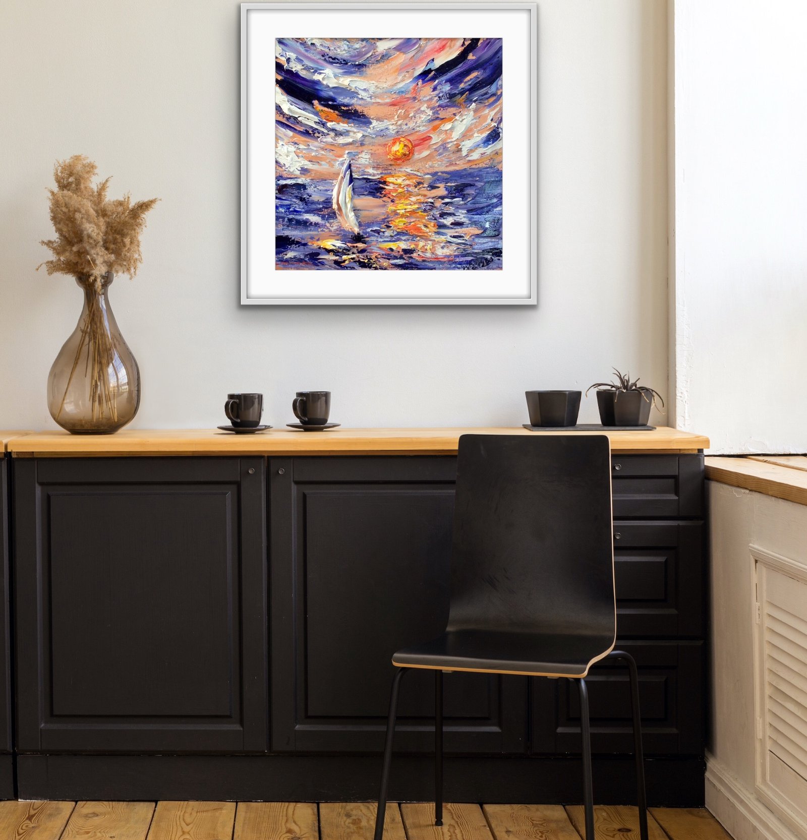 original oil palette knife framed in a black and white double frame gold inset