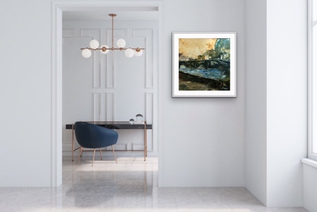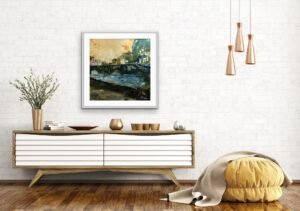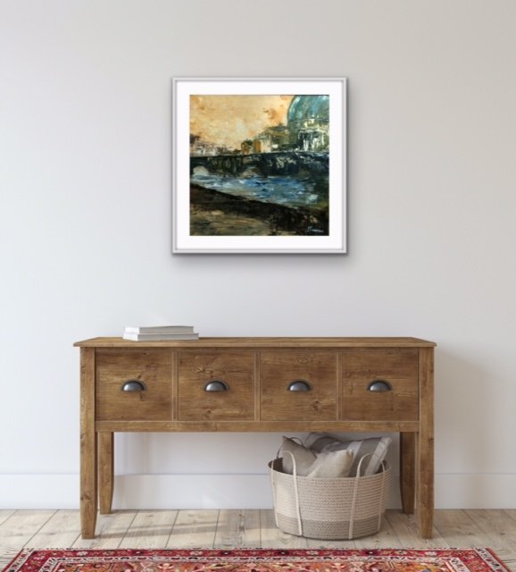 original oil palette knife framed in a white wood frame frame size 35cm x 35cm