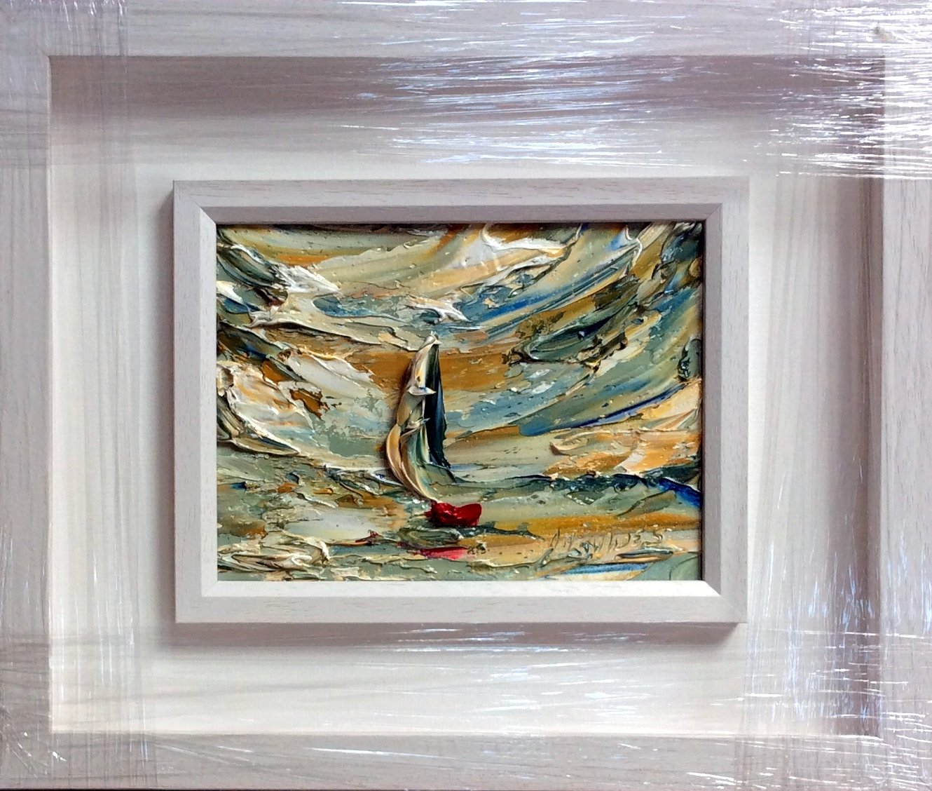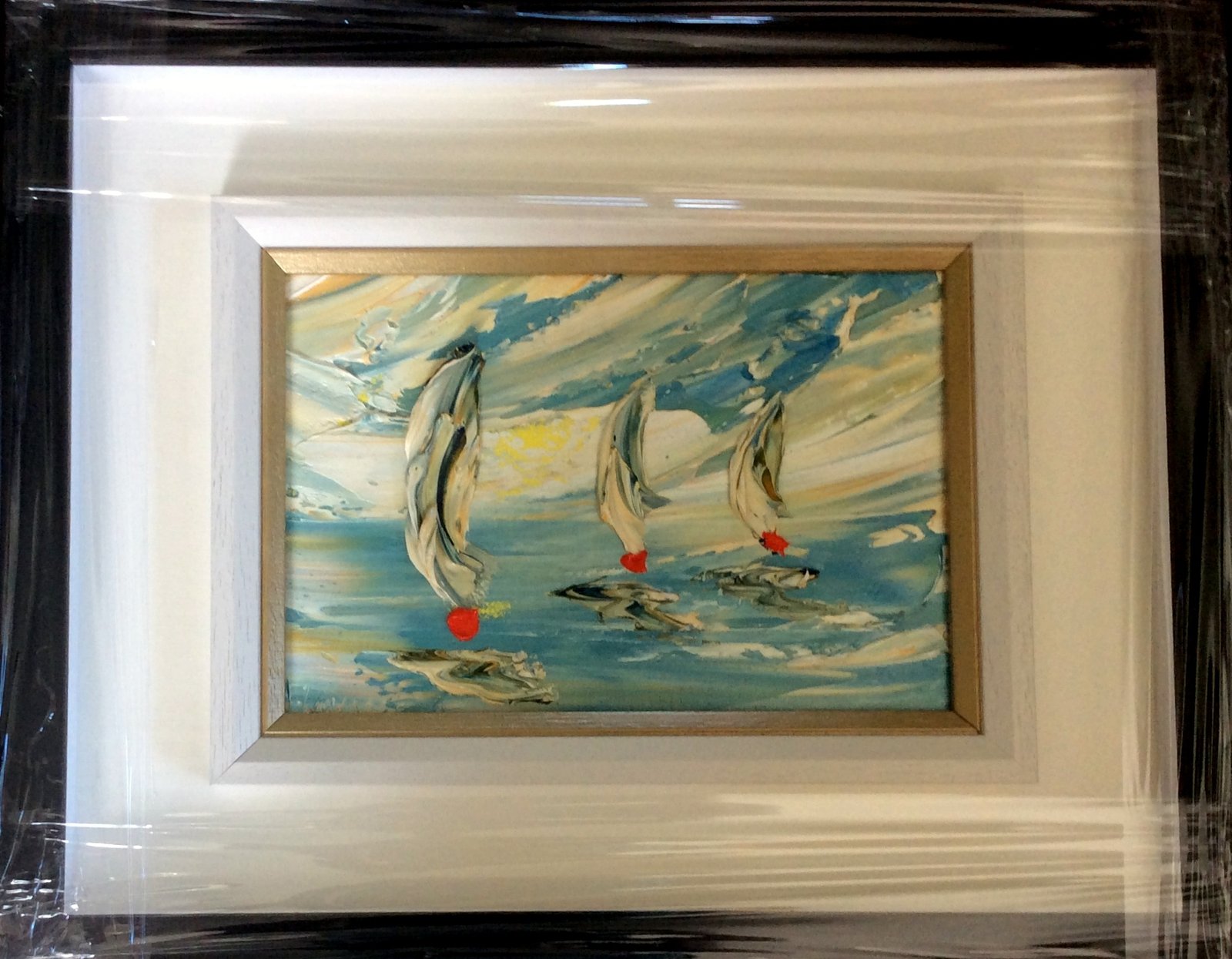 original oil palette knife framed in a black and white double frame gold inset