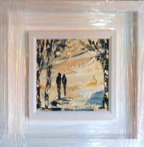 original oil palette knife framed in a white wood frame frame size 40cm x 40cm