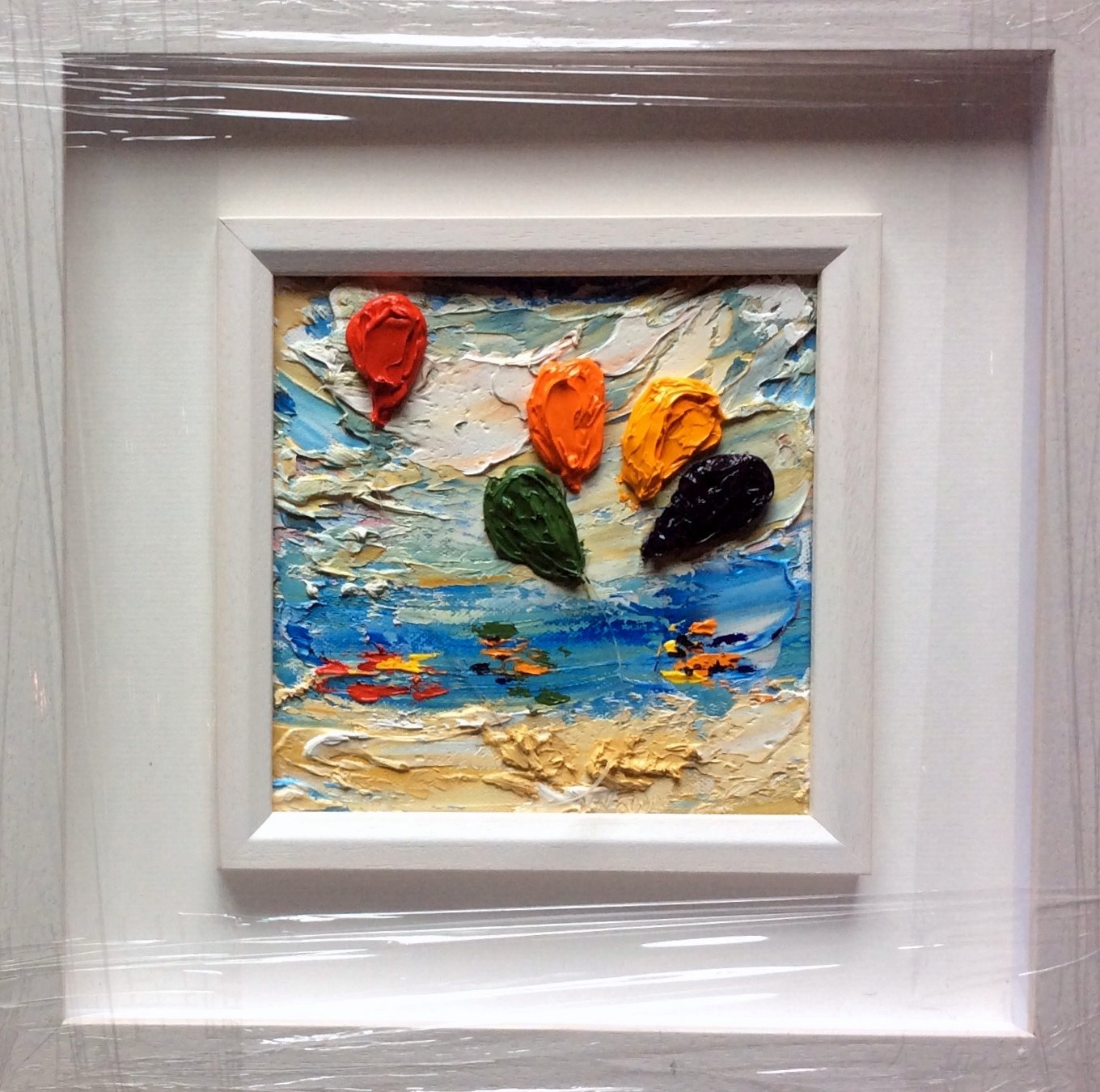 original oil palette knife framed in a white wood frame frame size 40cm x 40cm