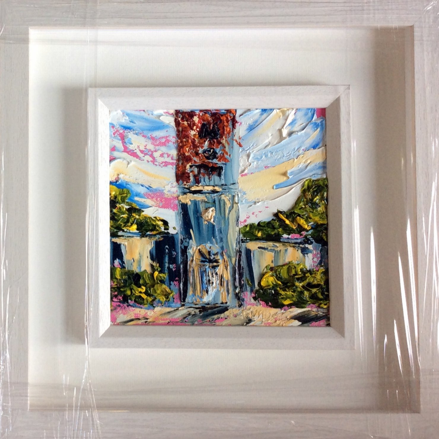 original oil palette knife framed in a white wood frame frame size 40cm x 40cm