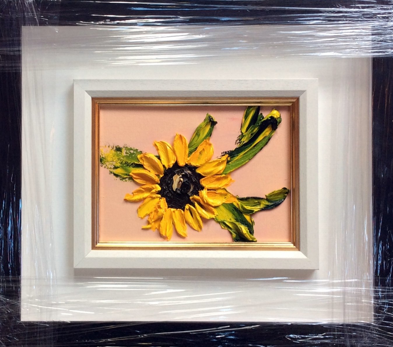 original oil palette knife framed in a black and white double frame gold inset