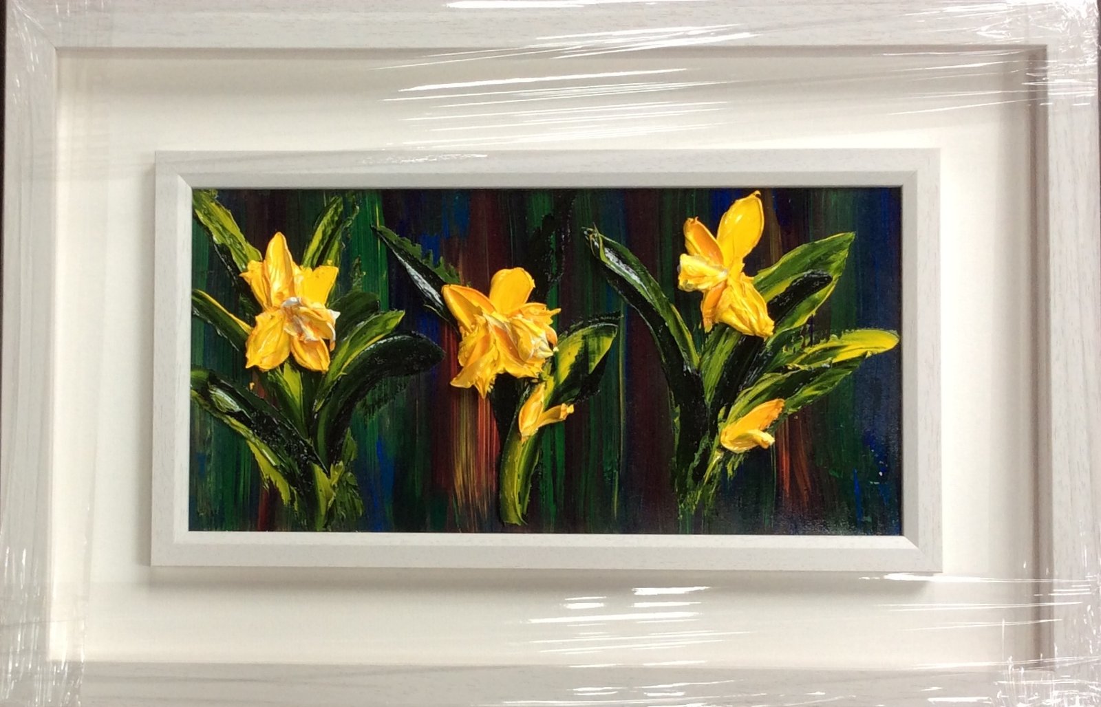 original oil palette knife framed white double frame
