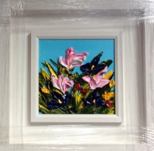 original oil palette knife framed in a white wood double frame frame size 40cm x 40cm